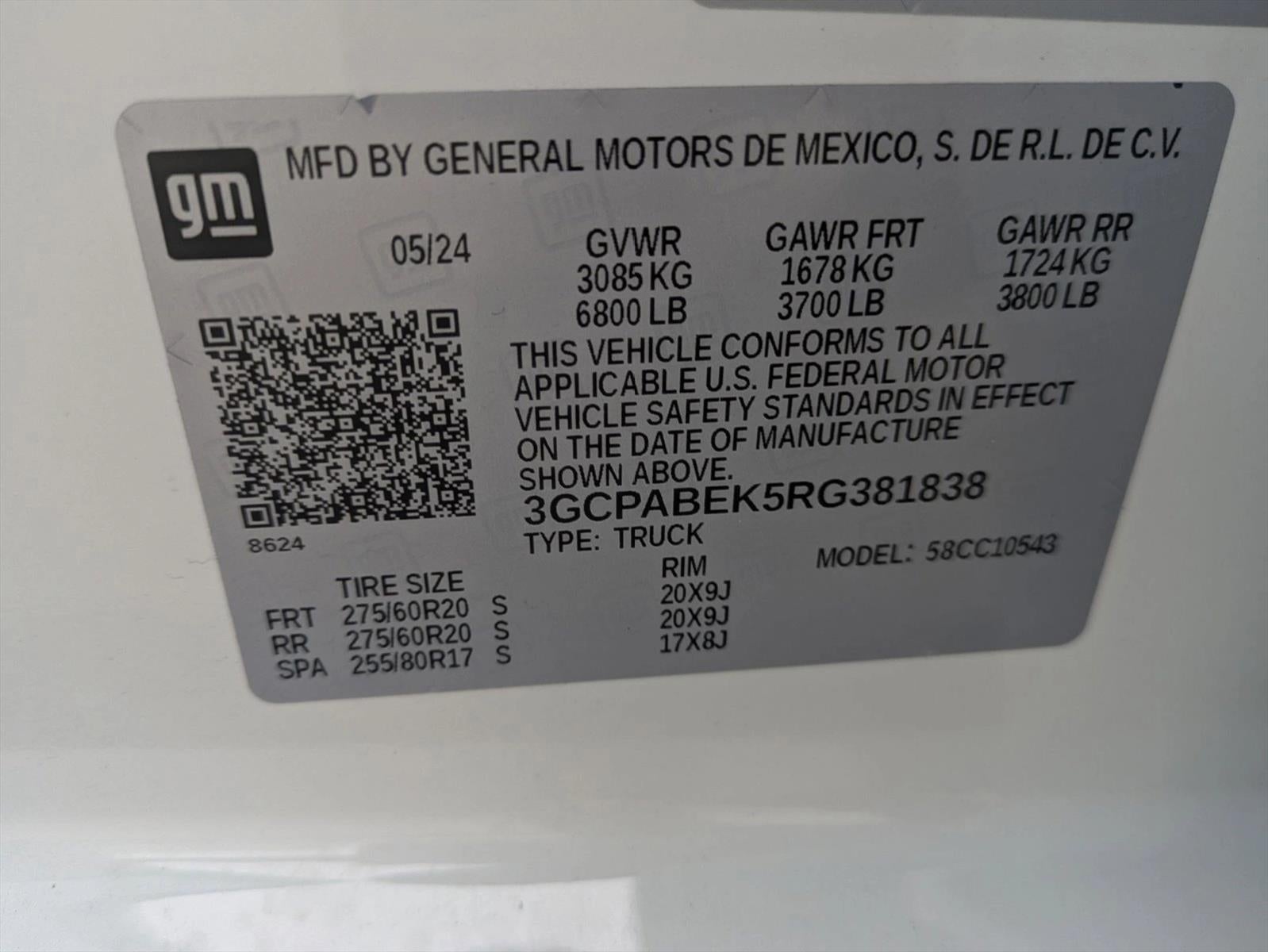 - Tires; 275/60R20 All-Season; Blackwall